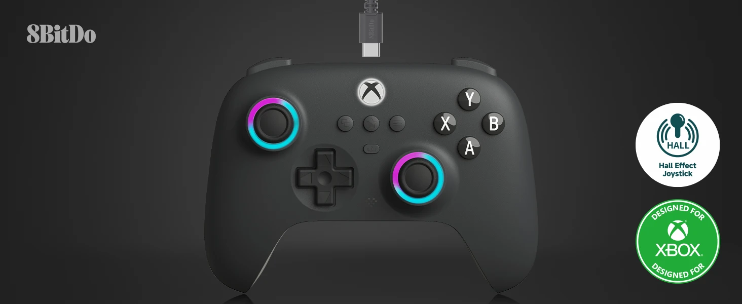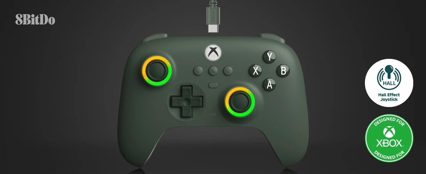 8BitDo Ultimate C Controlador com Fio, Gamepad USB com Joysticks de Efeito Hall para PC Windows e Xbox Series X ? Série S, Xbox One,.